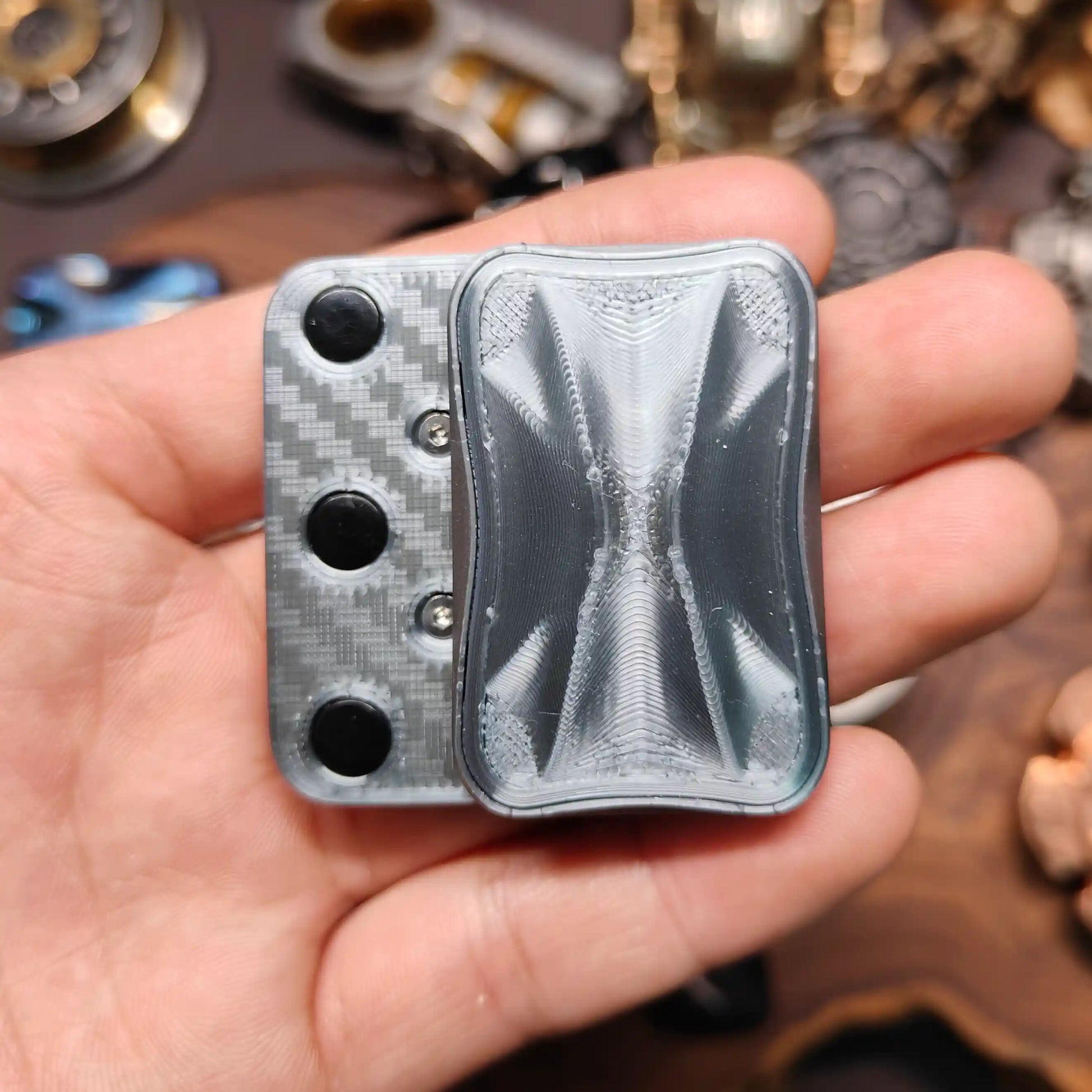 The Bop Q Infinite-Slide fidget is made using 3D printing, featuring a single bottom plate equipped with six esports-grade PTFE feet, delivering an exceptionally smooth sliding experience.